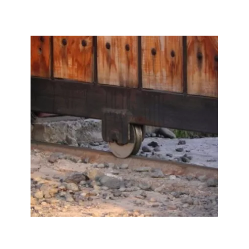 Uso industrial y acceso vehicular. Apoyo con rodamiento y fijación mediante bujes distanciadores y tornillos con tuerca.